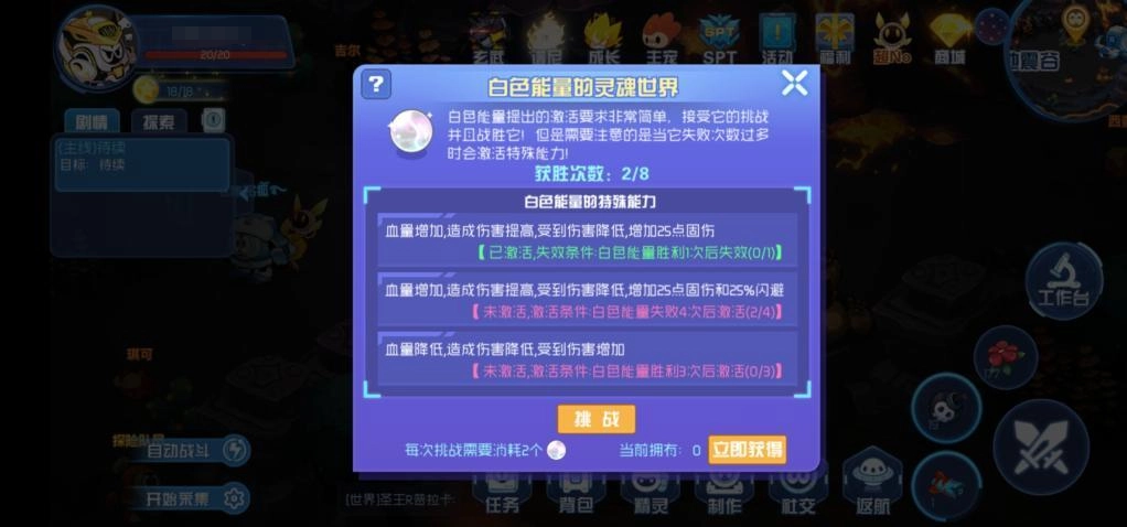 4、白色能量任务:这个任是需要玩家挑战珀伽索斯,并且需要获胜8次才能激活。