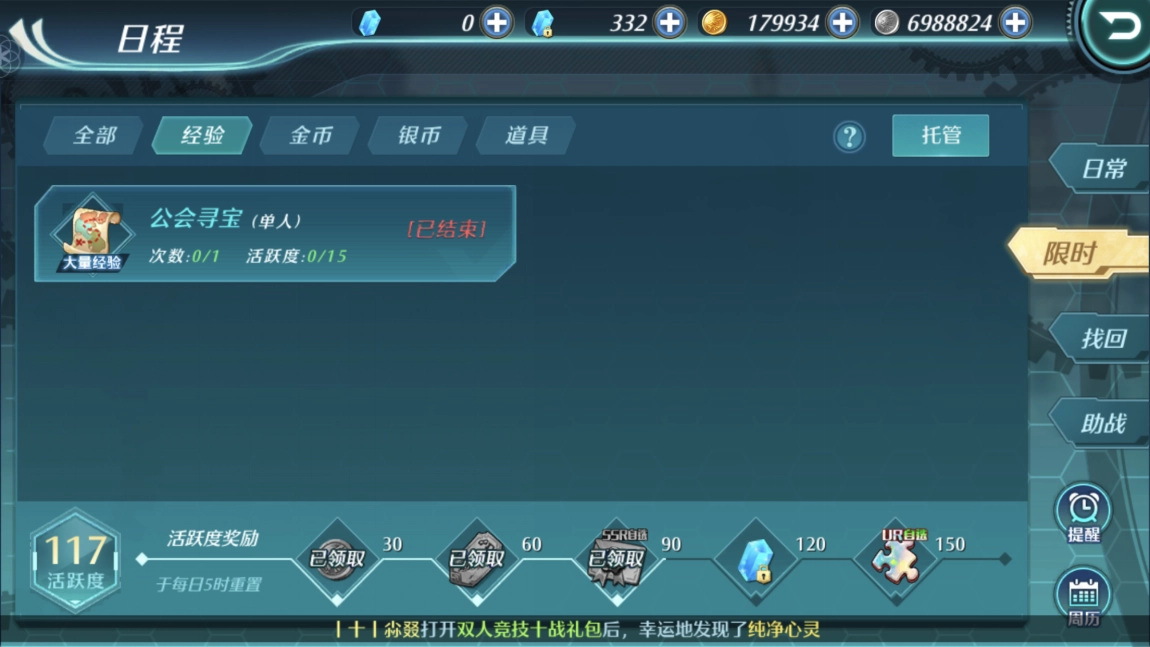 任务太多记不住日期该如何解决呢?我们可以通过日程功能查看每日的限时任务。要是担心忘记任务时间,还能在日程界面设置提醒,这样就能避免错过那些能获得高经验的任务了。