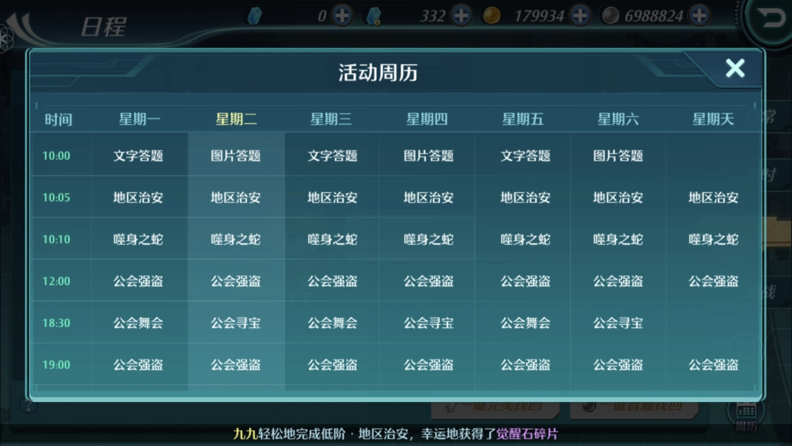 游戏里的日程是我们每天都得查看的内容。点击日程就能看到当前所有可接取的任务。