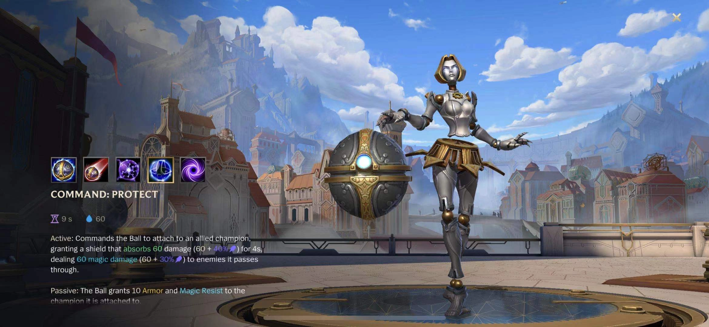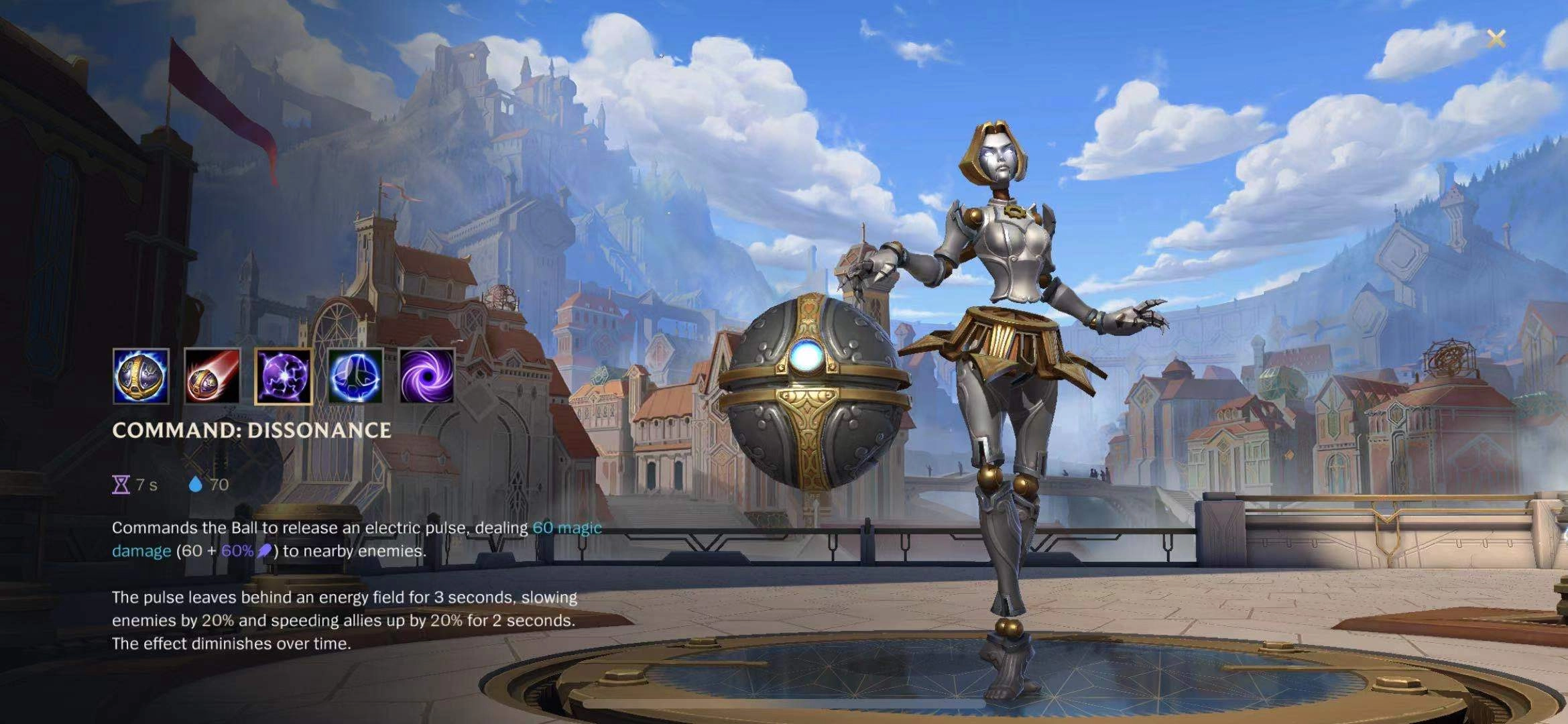 一技能、二技能与三技能之间存在连招配合:释放一技能后,用二技能召回球体可为自身套上护盾;三技能能在角色周围制造伤害并减速敌人,既可用作开团的先手手段,也能在危急时起到保命效果。