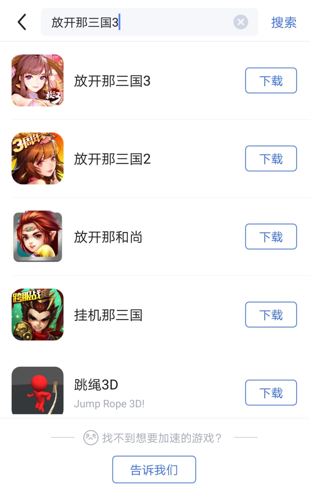首先,启动biubiu加速器,进入主界面后,点击屏幕右上角的搜索框,输入“放开那三国3”进行搜索。搜索结果出来后点击进入对应的页面,接着按下“立即下载”按钮,就能获取放开那三国3的安装包了。
