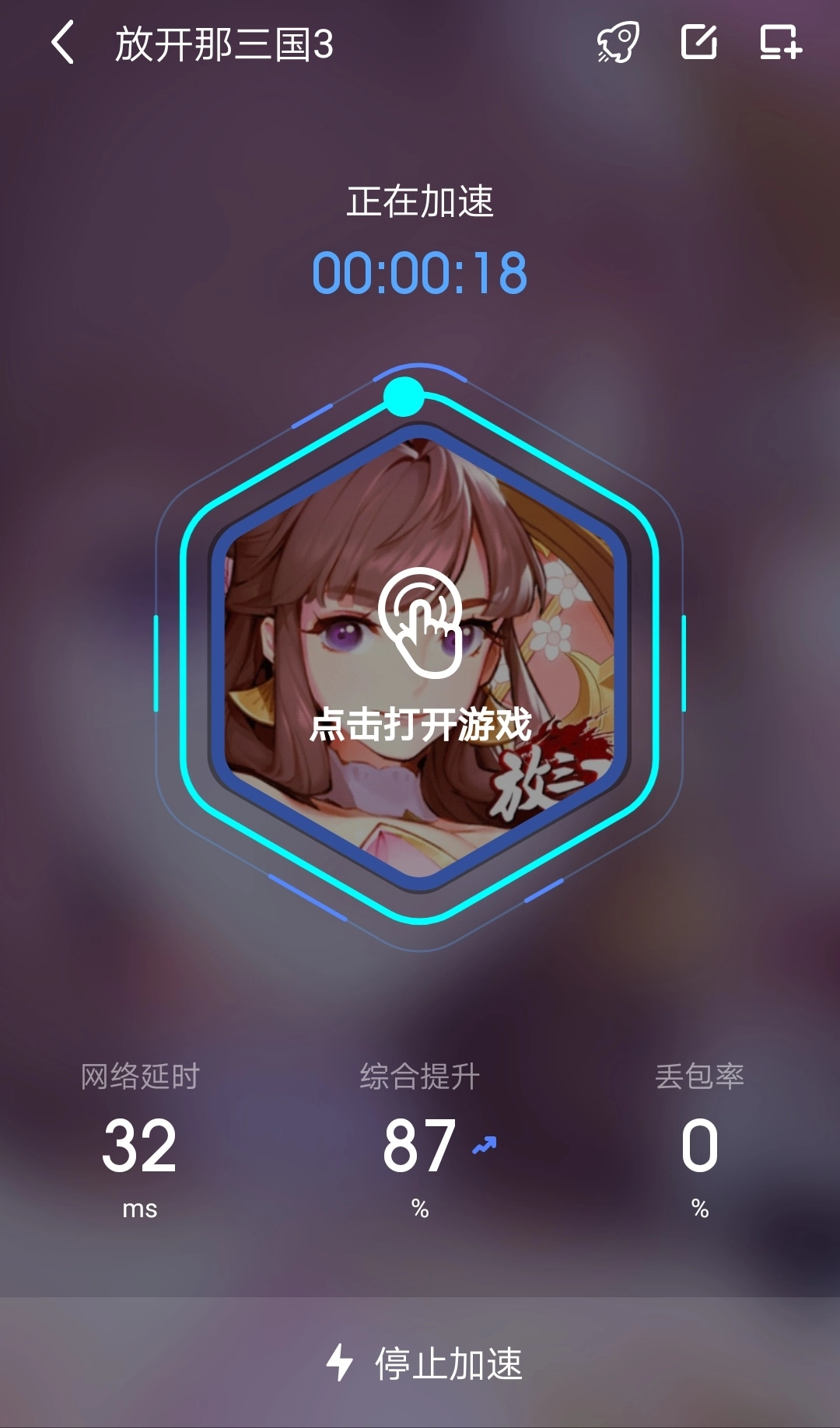下载完成后,游戏会自动安装到手机主屏幕上。接下来需要打开biubiu加速器,在搜索栏找到对应的游戏并点击加速按钮,此时biubiu加速器会直接启动游戏,玩家无需再回到手机主屏幕手动打开。加速成功后会显示类似下图的界面,其中丢包率为零属于正常状态。需要特别注意的是,务必提前设置好网络智能切换功能,这样当当前网络出现不稳定情况时,系统就会自动切换到其他可用网络。