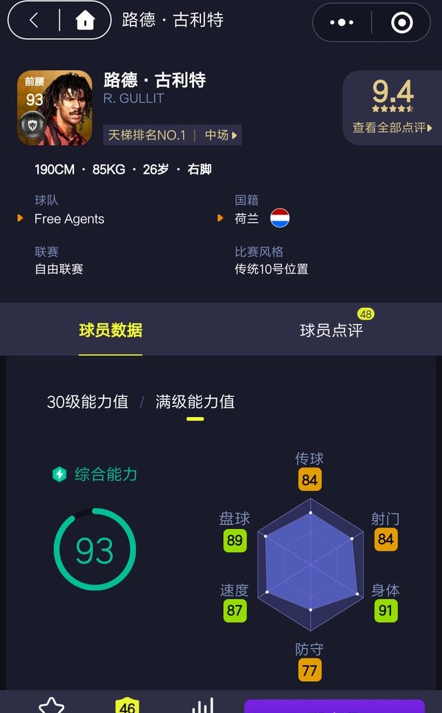 辫帅实力固然强劲,但终究并非完美无缺。古利特的体力问题无疑是他的一大短板,尤其是在实况足球手游中,他注册的前腰位置堪称体力消耗最剧烈的位置,没有之一。即便是拥有99体力的“铁人”内德维德司职前腰都倍感吃力,更遑论古利特这种顶级状态下体力值也仅有84的球员了,往往下半场没踢多久体力就会见底。所以,必须及时为古利特准备一名得力的替补球员。