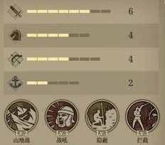 评价:侦查表现尚可,山地地形的限制比较明显,性价比不如平原和丛林场景,隐蔽与拦截能力处于中等水平。不过AI的弓兵数量没有预期的多,而且这点减伤在凯撒这类角色面前根本不值一提,定向减伤的上限远比不上无限制的盾墙。初始军衔偏低,既限制了快速暴兵,又增加了培养成本,因此不太建议选用。