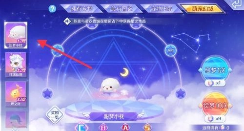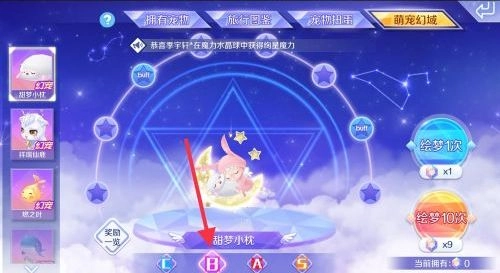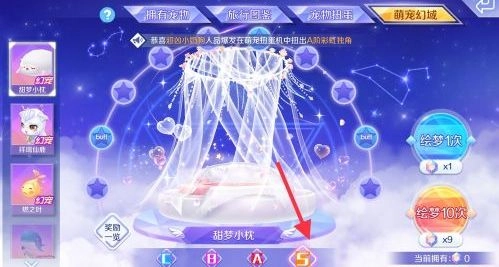 刚入手的甜梦小枕通常是b等级,得点击右侧的绘梦功能才能升级——可以选择单次绘梦,也能直接绘梦十次。要是能进化到s等级,它会幻化出一件超可爱的装备,不过目前游戏里好像还没人成功升级出来呢。