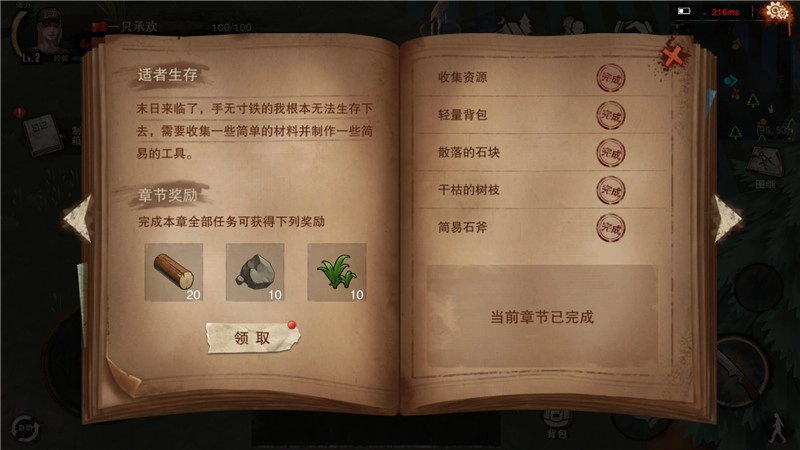 后面的内容很简单,按照他的指令完成任务就行,每做完一章会有奖励,在日记里就能领取,但要记得给背包留出足够的空间。到了后面没有NPC指引的时候,有空也可以去做日记里的任务,那些奖励可是很丰厚的。