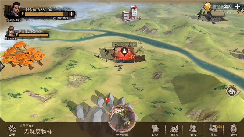 新人可以优先选择带有绿色和黄色标志的地图。出发前不用特意准备食物,确保自己吃饱喝足就行——因为升级的时候会自动回满生命值,同时还能各恢复20点饥饿值、口渴值和脑残值。另外别忘了随手打开遇到的箱子,里面的物品只要能带走就尽量带上。