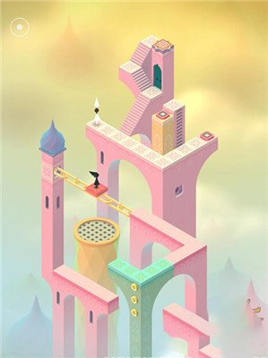 主人公随即爬下,走到最右侧的机关处,待乌鸦踏上红地毯时,便转动阀门将其拉至中间位置。