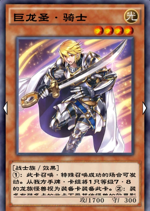 这套卡组的核心玩法,关键在于从墓地召唤高星龙族怪兽。玩家可以先召唤巨龙圣骑士,它拥有1700点攻击力,在同星级怪兽里算是相当不错的水平了。即便巨龙圣骑士被破坏,它身上装备的龙族怪兽也会被送入墓地。这时玩家就能触发创世龙骑士的效果,把墓地中的龙族怪兽召唤到场上。要是之前装备的龙族怪兽是青眼白龙,就能直接召唤出青眼白龙——它那3000点攻击、2500点守备的高数值,能让它在场上很难被击败。