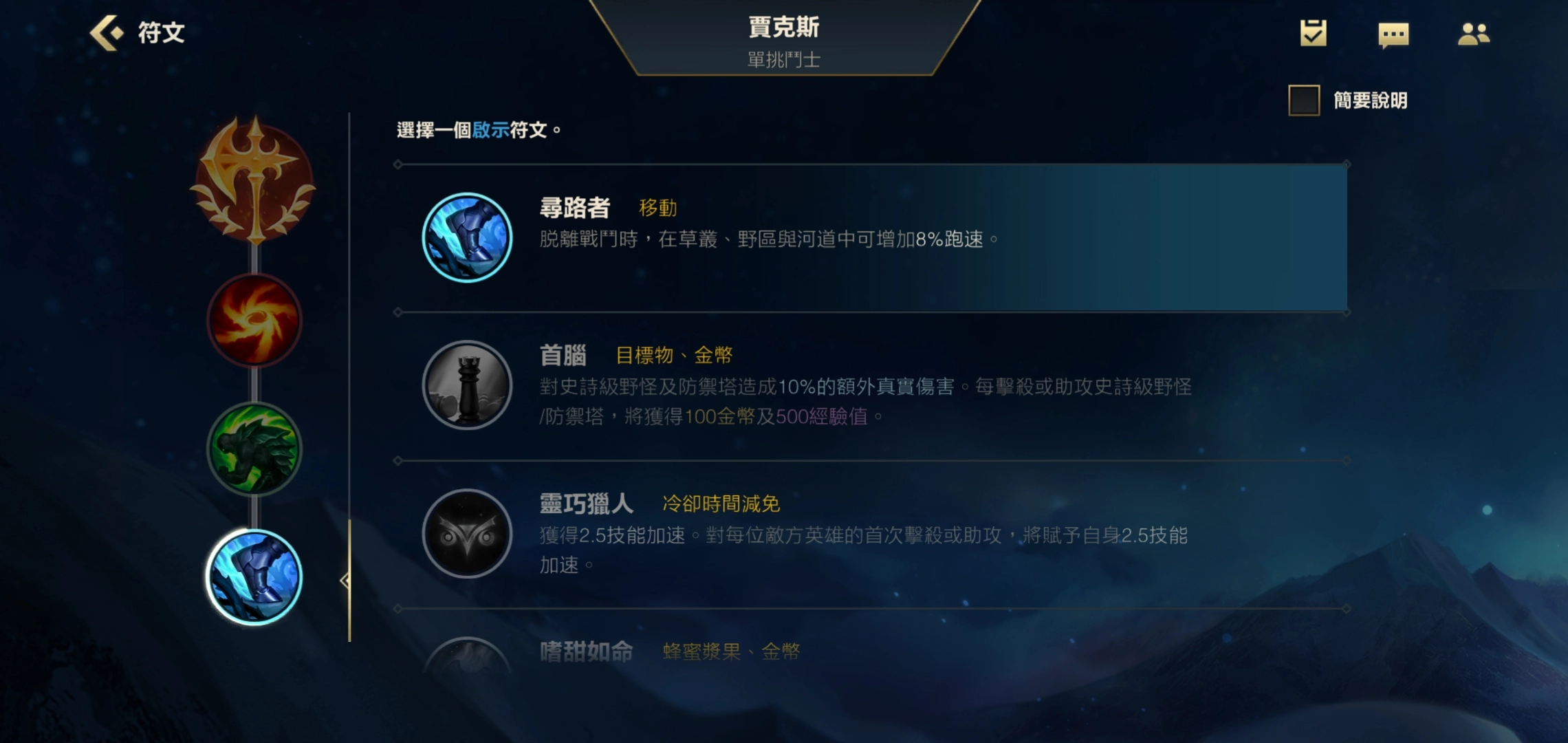 在英雄联盟手游里,贾克斯是个既能打野又能走上路的英雄,不过不少玩家不太清楚他该带什么天赋,所以今天我就来给大家分享一下LOL手游贾克斯的天赋推荐。
