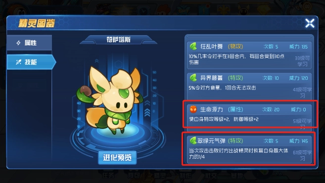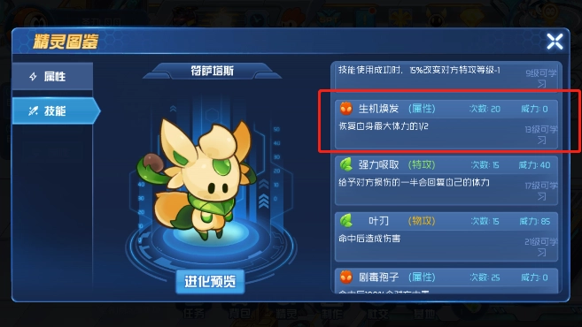 1、和初始御三家精灵相比优势明显,从技能就能看出实用性很强,还特别能克制敌人。要是敌人发起攻击,就用前两个技能持续回血并提升抗性,等对方攻击乏力时,直接消除其强化状态再展开反击。