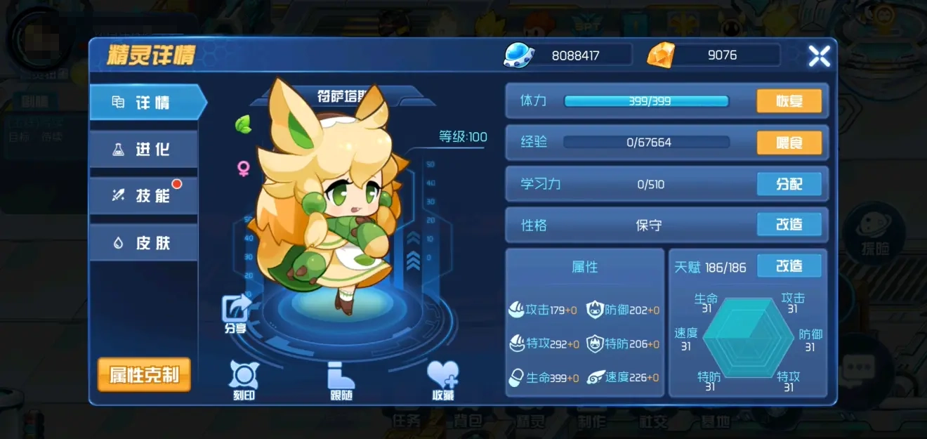 (5)总结:草兔子符萨塔斯是这款游戏里相当亲民的精灵,它的技能组合十分出色,凭借特防与特攻方面的优势,算得上是名副其实的坦克型精灵。不仅获取起来难度不高,到了后期也能发挥重要作用,对平民玩家来说无疑是一大福利。