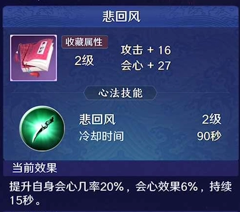 5、悲回风:绝对时间内提高唐门本身的会意概率20%,会意特效6%。
