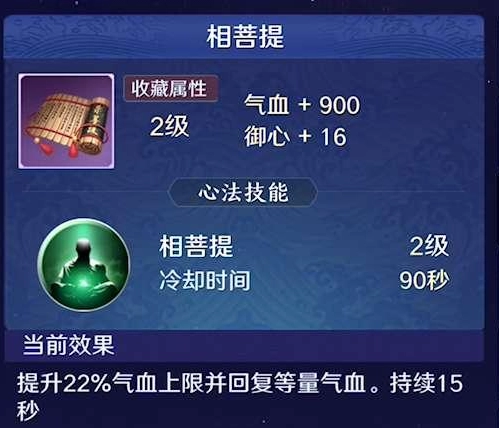 3、相菩提:绝对时间内提高22%气限制,并连续恢复等额的血气。