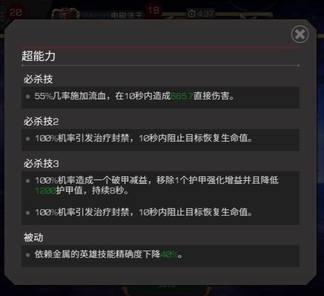 技能说明中并未提及“出血”特效,实际上这是万磁王超能力附带的效果,触发概率为55%,能在10秒内持续造成伤害。