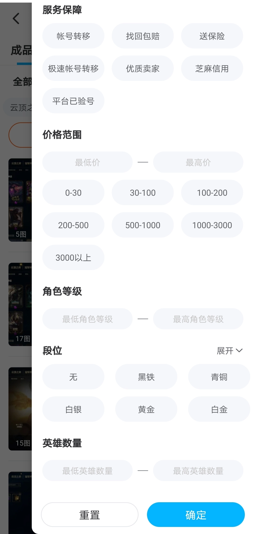 交易猫是一款十分专业的游戏交易应用,涵盖了丰富多样的交易项目,同时配备了便捷的搜索筛选工具,能帮助用户更高效地找到目标商品。例如,若想寻找30级的英雄联盟账号,只需通过“筛选”功能,在角色等级栏输入30,系统就会精准呈现所有符合条件的账号;除此之外,还可以从服务保障、价格区间、段位等级、英雄拥有量、皮肤数量以及炫彩皮肤数量等多个维度进行细化筛选。