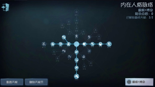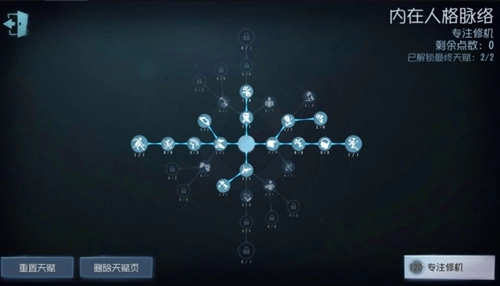 溜鬼位的终极天赋依旧选择【破窗理论】与【回光返照】,再点出【绝处逢生】,此时还剩余35点天赋点。这35点可依据对战情况和使用角色灵活搭配,个人建议参考以下两个实用方案。