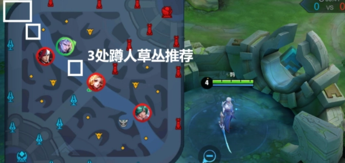 铠清完兵线以后,有大招就能选择蹲人了,留意视察小地图,在上路和河流这2个草地蹲人都是相对符合的,即使来人了也轻易转移。