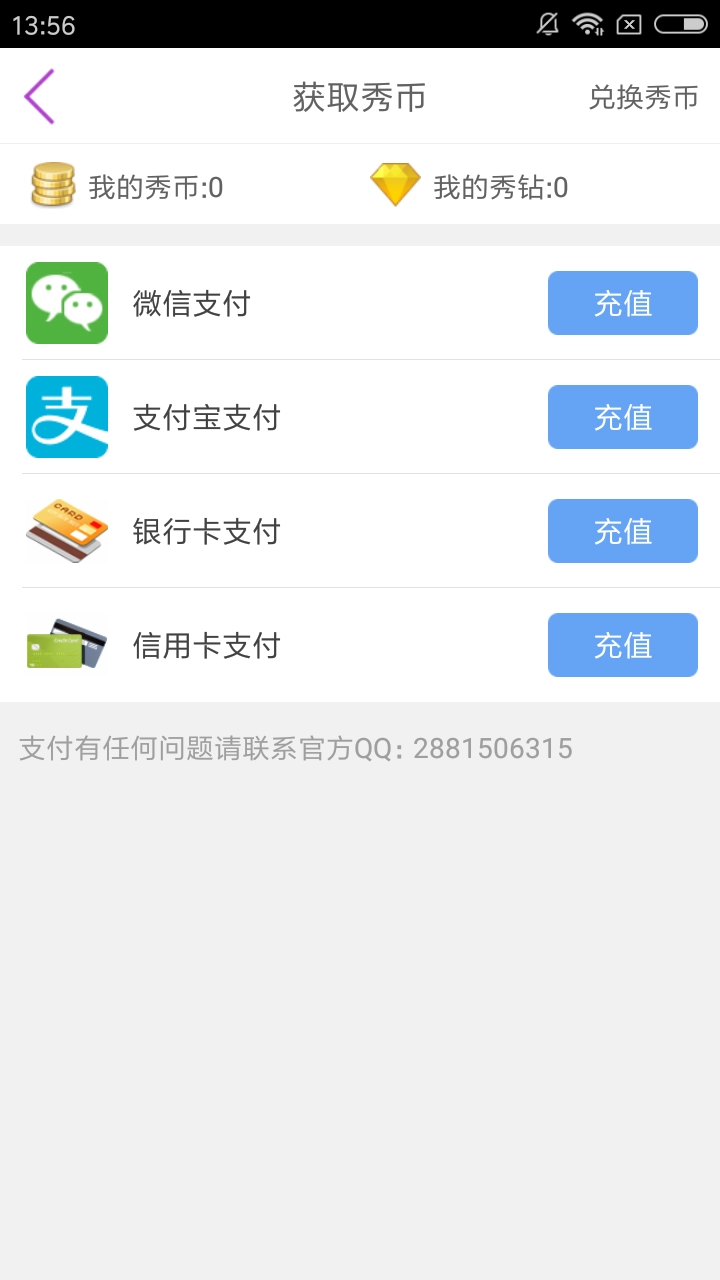 在发现页当中点击获取秀币,用户们就可以看到充值秀币的页面,只需要选择自己合适的一款支付方式就可以完成秀币的充值。