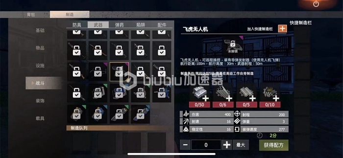想要快速获取战斗机几乎是不可能的,因为无人战斗机只能通过制作获得。而制作战斗机所需的配方,需要在《王牌战争:文明重启》的商城中用点券购买,所以无人战斗机可以说是氪金玩家的专属。当前游戏版本有刺蛇无人机和飞虎无人机两种,它们的制作材料完全相同,只是属性略有差异。