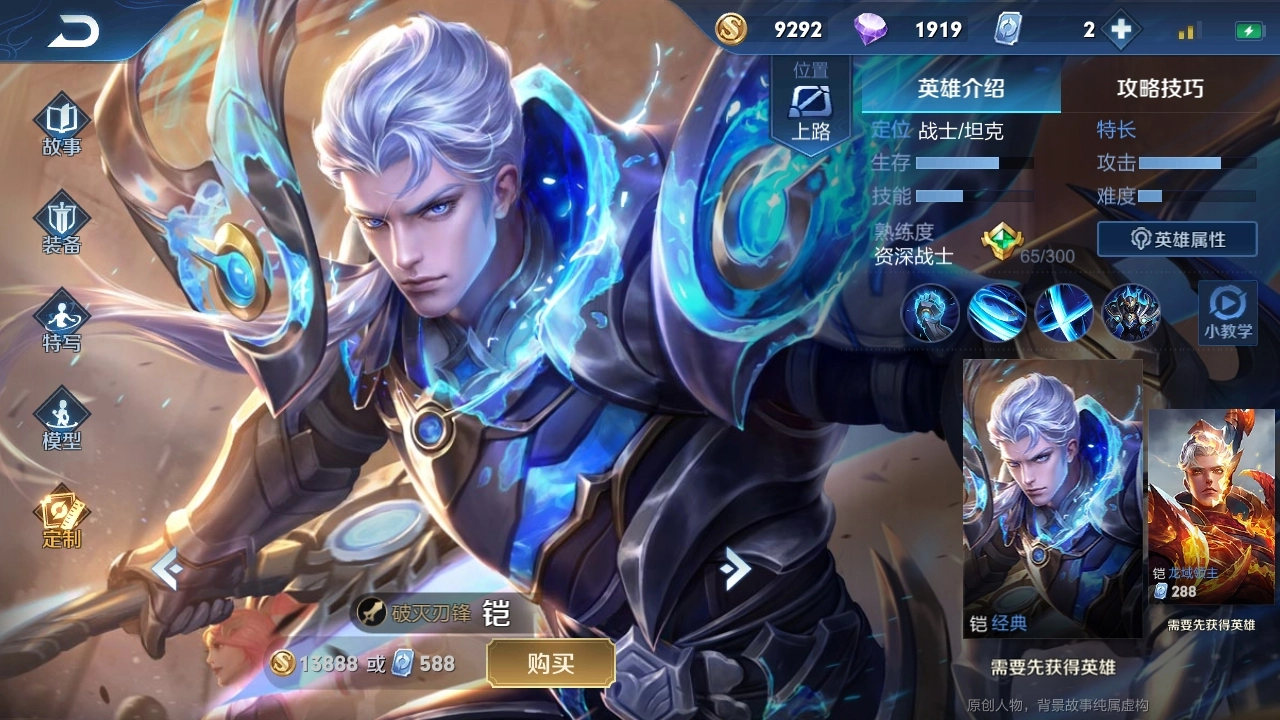 如上图所示,铠在战士英雄里是克制马超的最优选择,他的一技能带有80%的减速效果,这让他在对抗马超时能形成明显的压制力。除此之外,二技能最后一段的强力控制也十分好用。在实际对战过程中,遇到马超的话,铠可以先释放一技能进行减速,等马超试图后撤寻找反击机会时,马上衔接闪现和二技能跟上,之后再把握好时机开启大招就行。