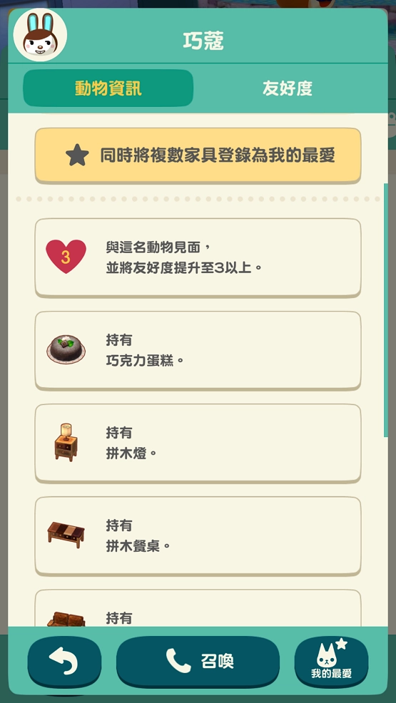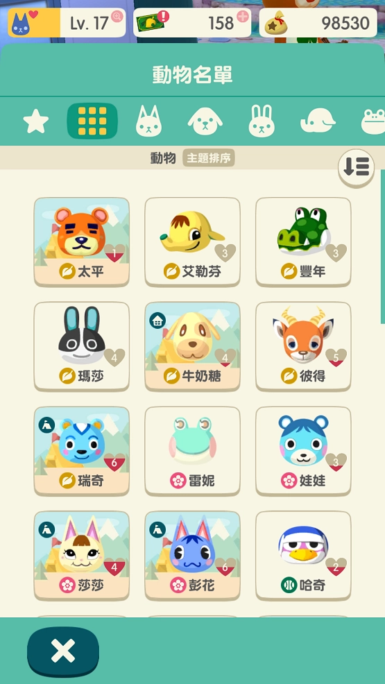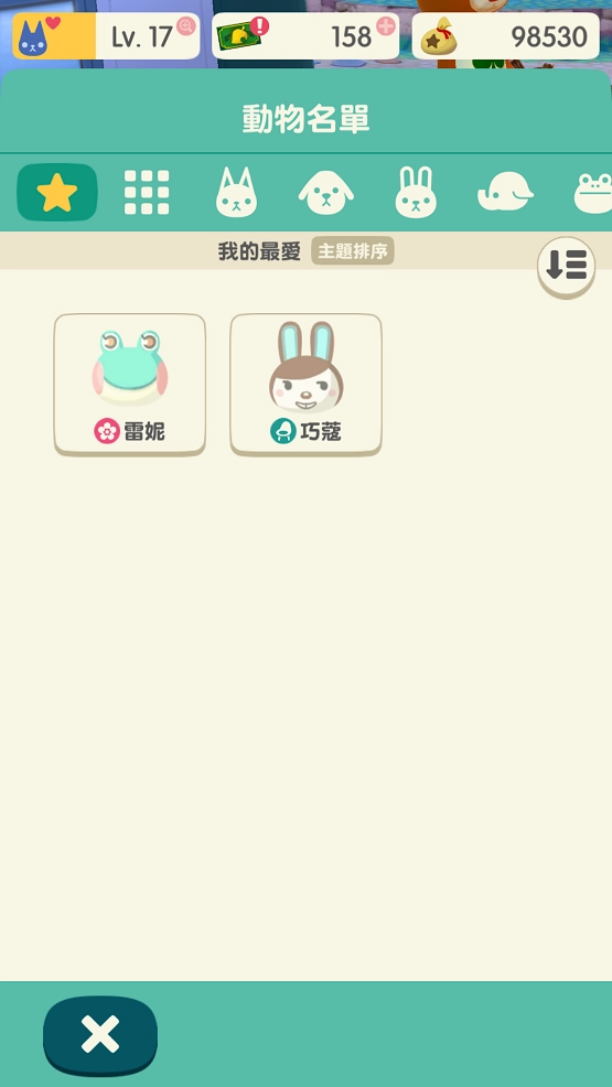 玩家也能依据动物种类来查找,还可以把动物们按照友好度、宾客优先、服装优先、特别愿望优先、主题的顺序排列,方便玩家快速了解小动物的情况。