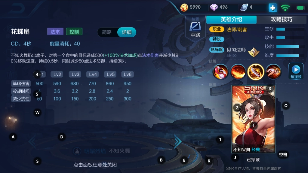 当不知火舞打不过敌人的时候也可以麻溜的逃跑,二技能能够远距离扔出小扇子,就算敌人要追,也吃不消不间断的扇子攻击,还担心被不知火舞反杀的可能。