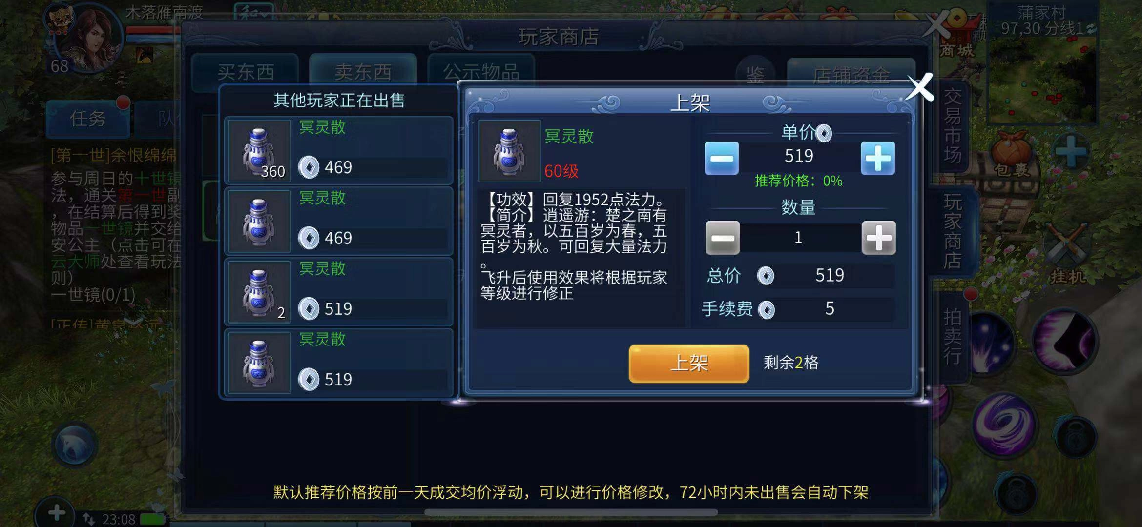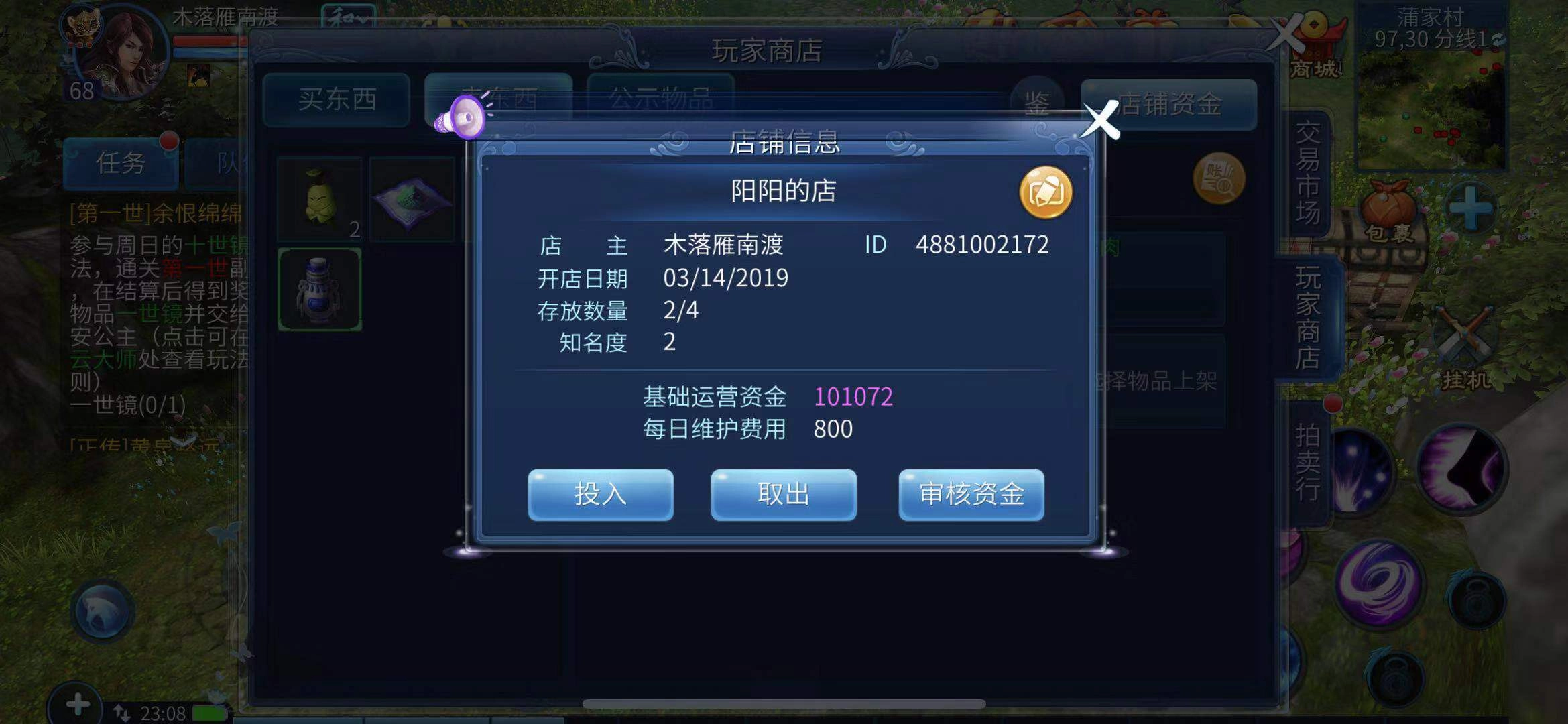 在《倩女幽魂》里开店铺和现实生活中类似,都得有启动资金。玩家若想开店,要先向易市系统缴纳一定数量的银票——这里得注意,交的是银票而非银两。大概交够十二万左右的银票,店铺开启后玩家会获得四格空位用来出售装备。要是想多卖些东西,玩家还能花些银两增加商店空位。
