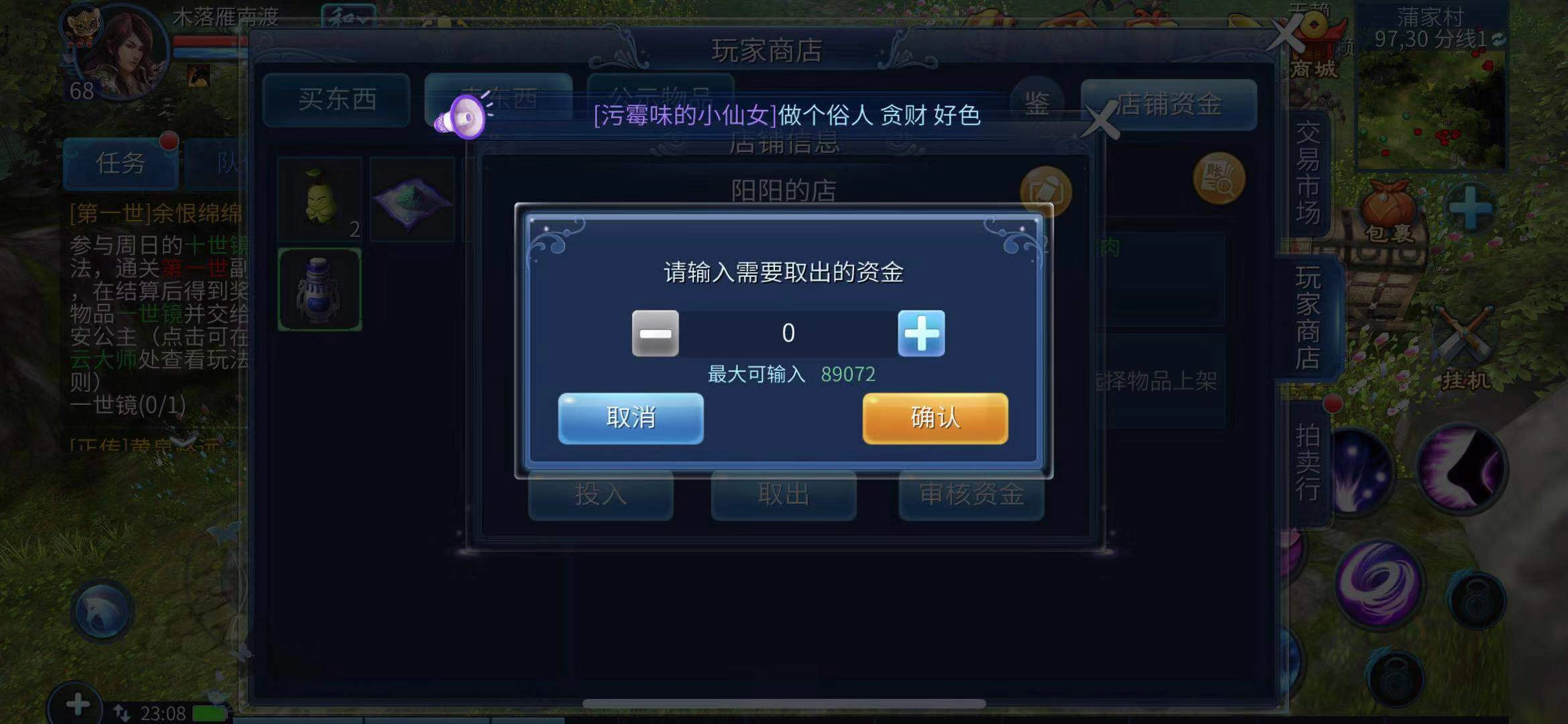 玩家卖出装备获得的银两,会先存到店铺资金里。建议大家攒够一批货物卖出后,再一次性提取店铺资金——因为每次提取后都要经过720分钟的资金审核,没法随卖随提。另外需要注意,提款时不能把钱全提走,店铺会始终保留两万的运营资金。
