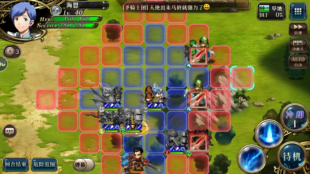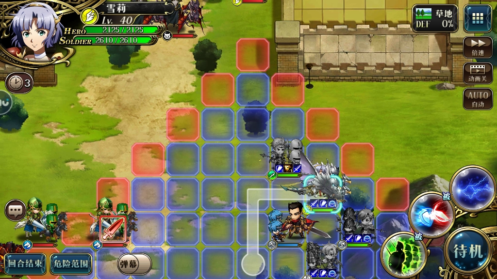 第二回合我们要做的事情更多了。首先得把整个阵容整体往后撤,这样对方骑兵就会持续向前推进、逼近我们。这时候应该优先治疗受伤的格尼尔,让他恢复自身的忽略技能。等格尼尔治疗好之后,再趁着敌方骑兵还在快速向我方推进的时机,再次向前推进阵容。等我们进入吸血鬼的进攻范围时,就可以针对性地去攻击吸血鬼的干涸技能了。