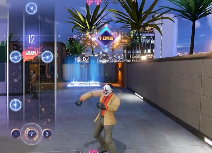 进入游戏后,我们会化身为一名小丑,待读秒结束,就需要开始跳舞了。这个跳舞环节颇具难度,我们得在道具落下时,迅速按下对应的数字键,才能顺利完成舞蹈动作,而且节奏很快。不过,在此过程中我们也能欣赏到小丑那曼妙的舞姿。