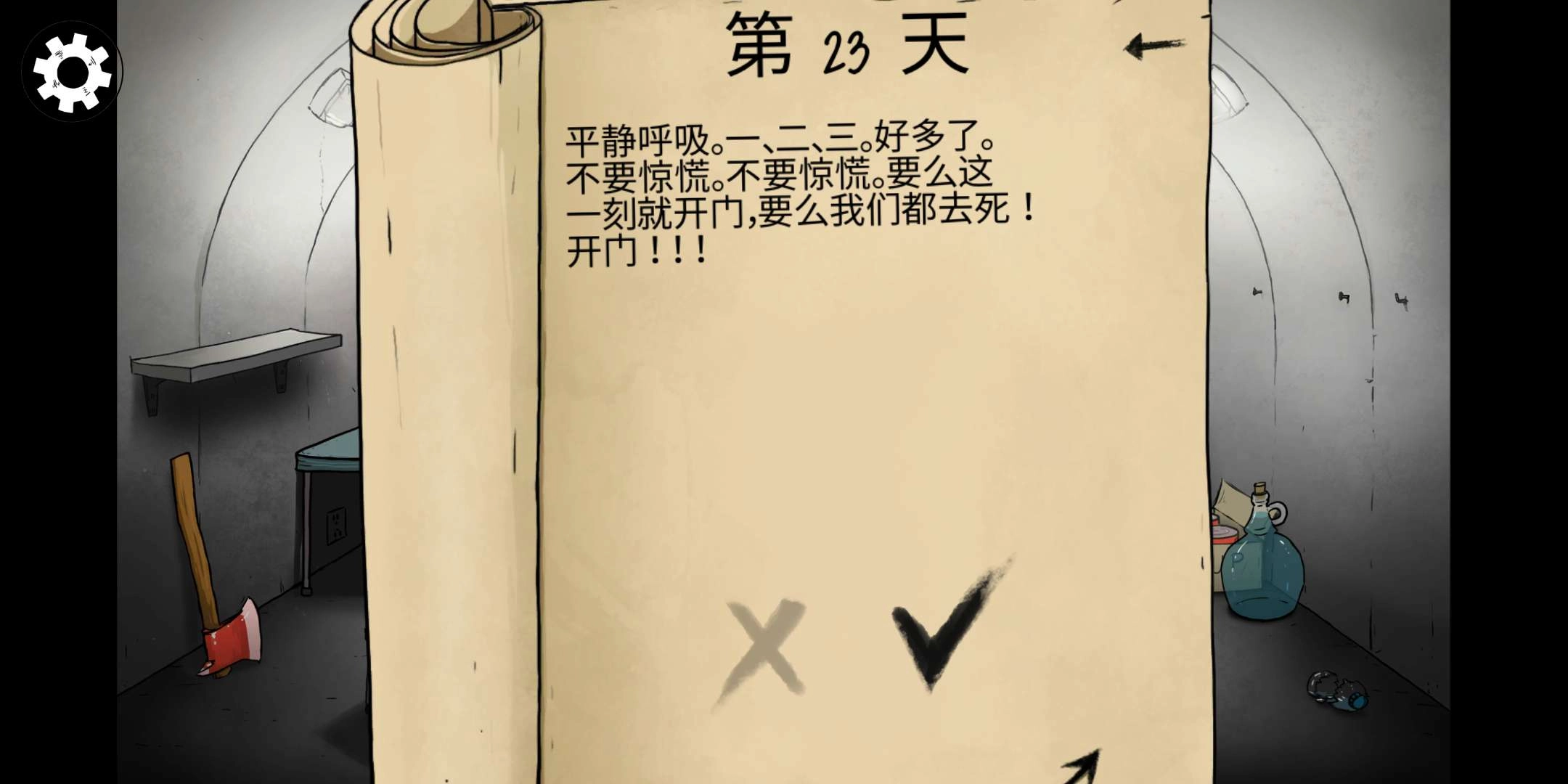 4、军队敲门的情节,选择开门,被军队救了。