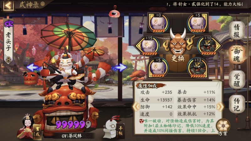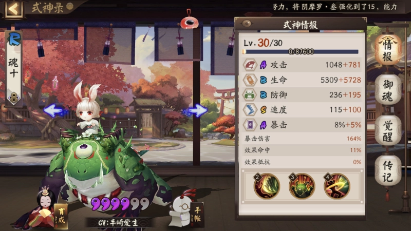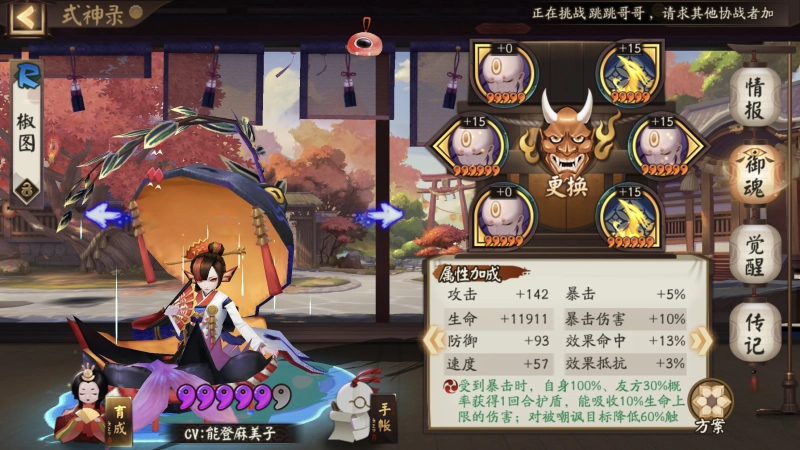 椒图搭配常规地藏像往常一样,考虑输出的话,有椒图在场时推荐带上犬神,毕竟犬神的被动反击触发概率比狰要可靠不少。提到狰的话,还是不太建议搭配吸血姬,因为对面如果有椒图,你没办法确保能一刀秒掉对方椒图,这种情况下就别用容易“自损”的吸血姬了。