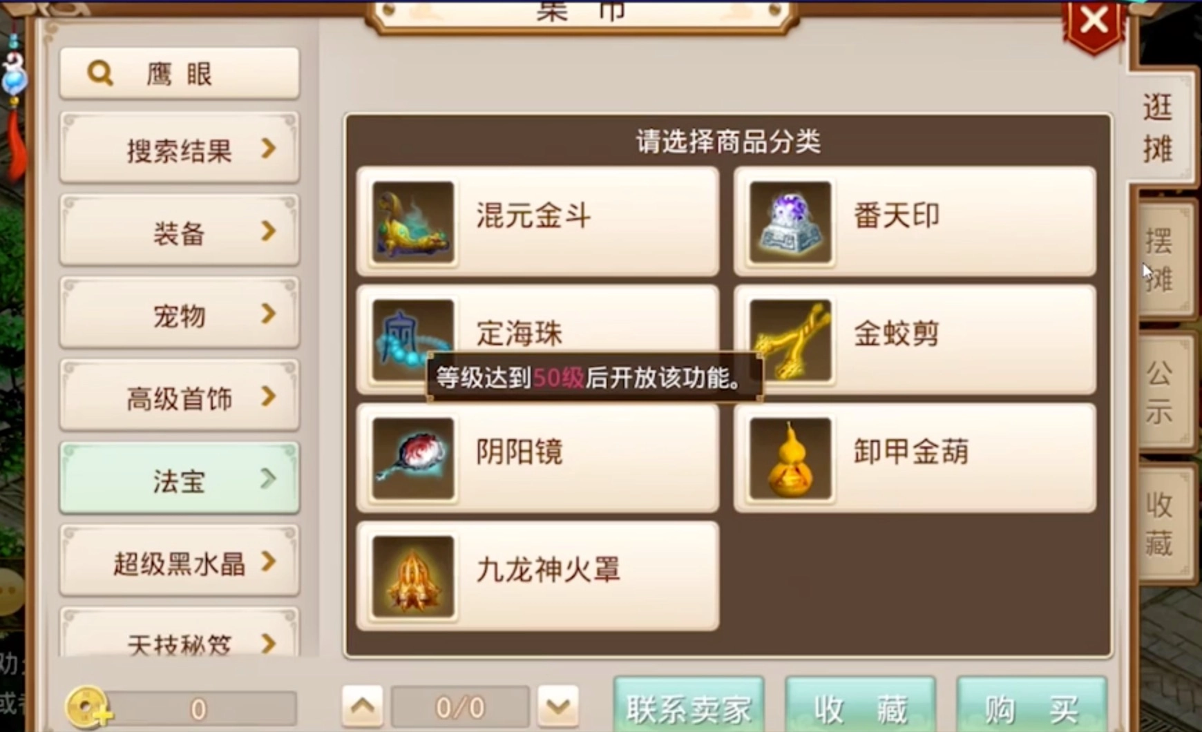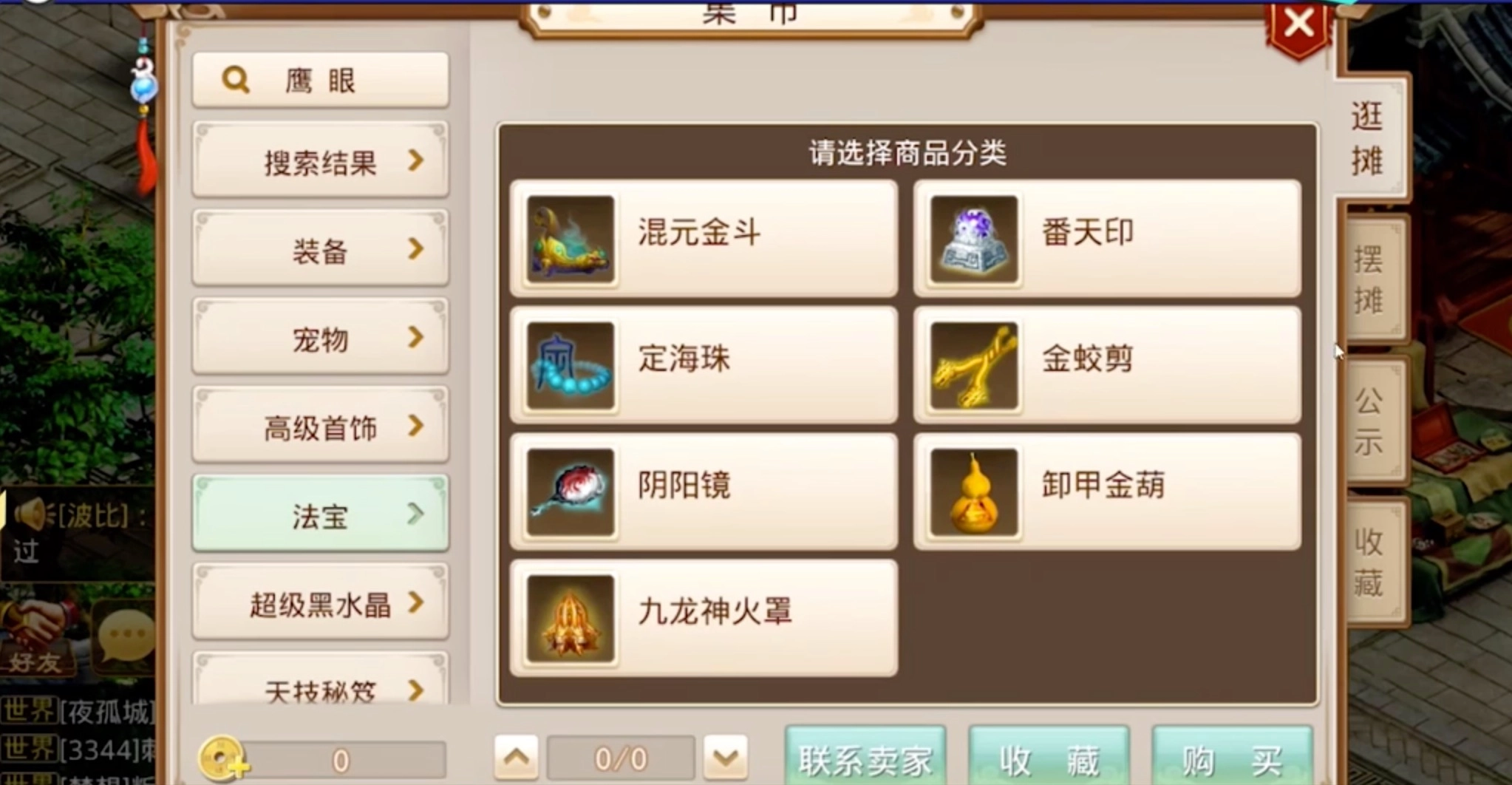 在集市里,我们能浏览装备、宠物、法宝这类各式各样的道具,要是碰到让自己比较心动的道具,点击右下角的购买按钮就能完成交易。