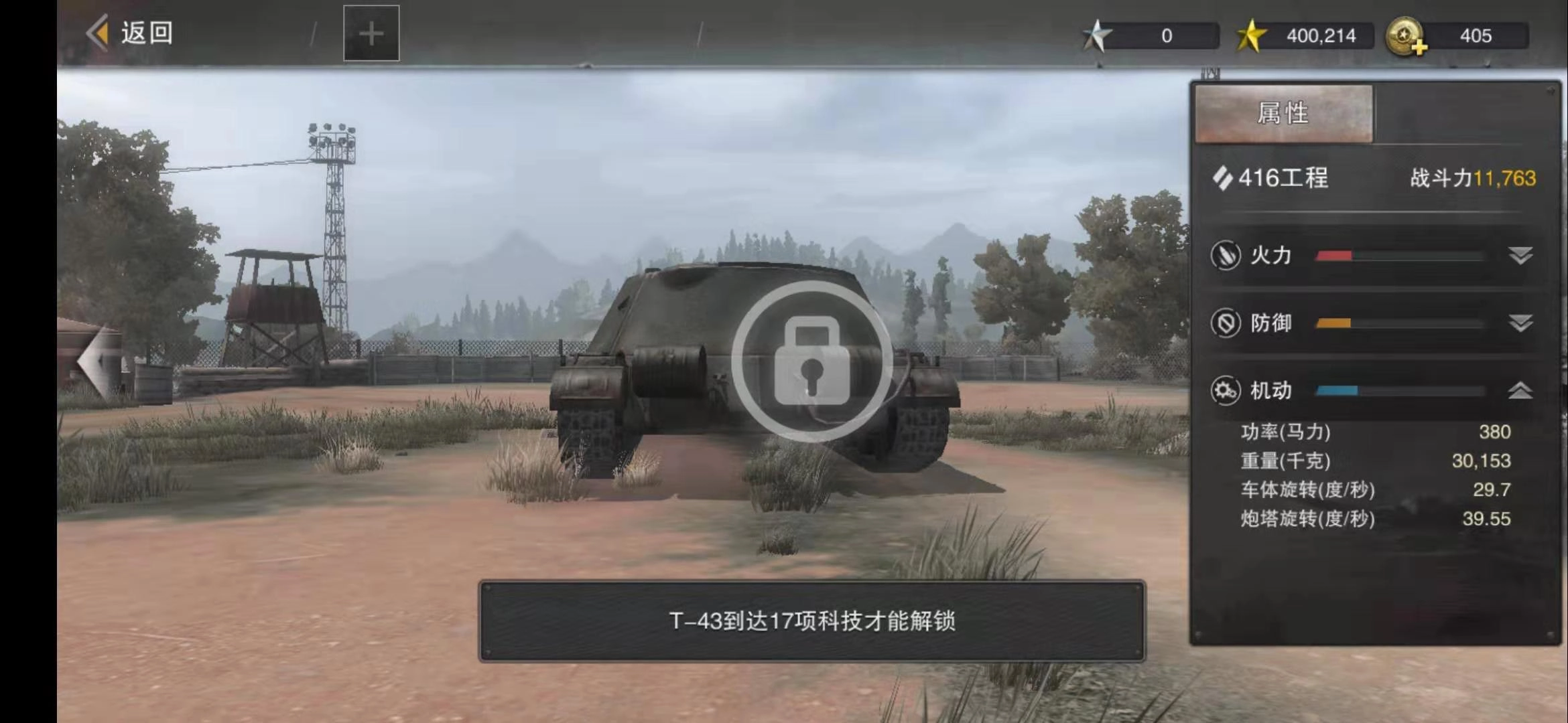 而且这款车的履带在水中行驶时速度下降得很厉害,不适合在颠簸路况下高速行驶。416的整体车身比较轻,又因为炮塔不能全向旋转,所以无法掉头逃跑;遇到障碍物时车体减速幅度太大,碰撞后还会因为炮塔非全向旋转的问题,导致无法看到敌人的位置。