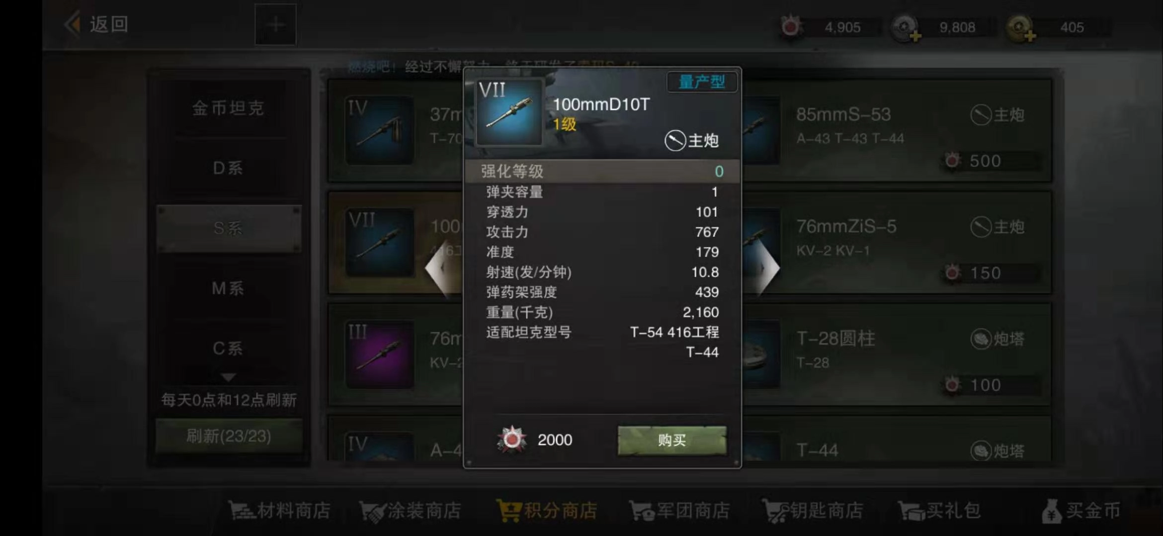 2. 416的第二个优势在于100mm D10T这门高穿透炮,它拥有101的穿透能力与767的攻击力,基础装弹速度为6秒(未计算加成),面对多数轻坦时,要么能直接一炮将其击毁,要么能把对方打至残血状态。凭借100mm口径搭配高穿深的特性,这门炮在同级别中能排进前三,不过和更高级别的63式、康威以及AMX AC 1946的主炮相比,还是存在差距的。
