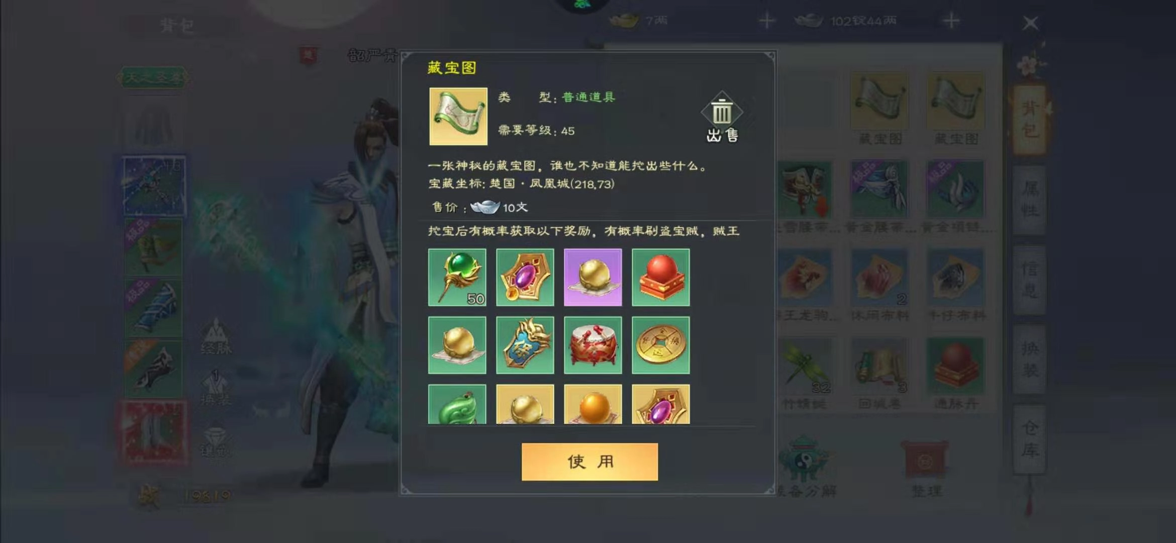 为了拿到更多奖励,我给大家分享个小技巧:经过多次挖宝尝试发现,把藏宝图攒起来一起用,比一张张单独挖更容易出极品道具。建议至少凑够10张以上再一起挖,这样才更划算。