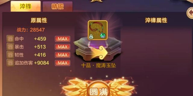 2、飞升装备可萃峰和精锻(升品),大大提高属性。