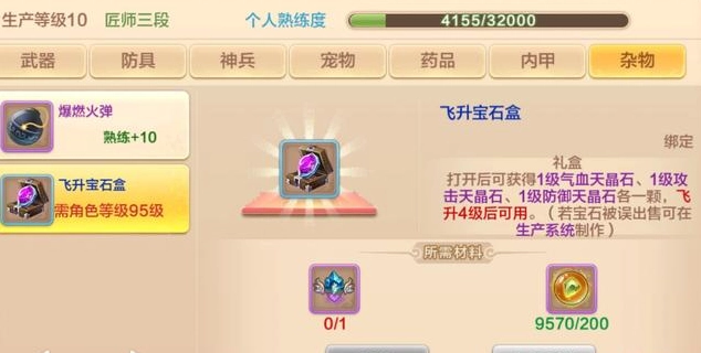 95级前留意积累飞升经验书,快速提升角色飞升级别。