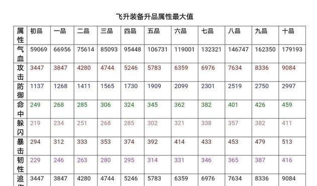 飞升装备精锻:飞升装备可升品,升品后萃锋最大值会改动。详细统计数据如图为。
