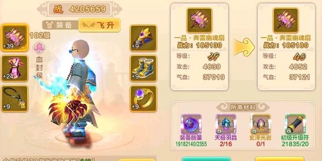 飞升装备无论是升级还是加强,都需要消耗大量原料,但属性提升幅度却很小,尤其是升级环节。所以建议尽可能在早期阶段,就把飞升装备的等级提升到九级,加强等级达到12级就可以了。