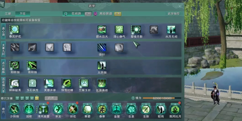 万花职业主要两个内功是离经易道与花间游,前者是治疗回复,后者是输出。