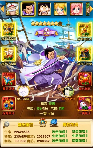 路飞开场时,除了打飞攻击力最高的伙伴是确定的之外,其他伙伴被打飞的概率只有25%,这个概率相当低,除非运气特别好,不然大部分情况下只能掌控1个伙伴。而且他自身打飞对手的控制效果还可能被闪避,本身的命中概率也不高。(被打飞的伙伴无法进行格挡还击,也无法闪避任何攻击)