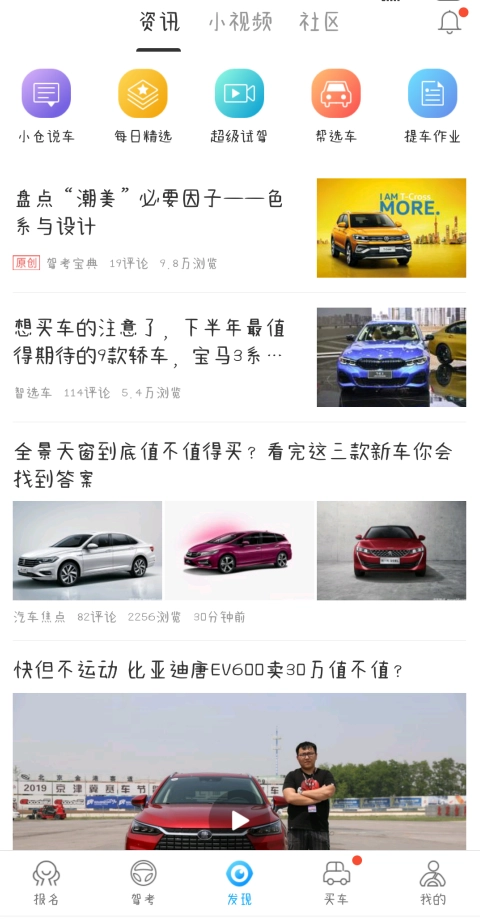 3.在“发现”板块,你能获取最新的驾考动态和汽车相关的实用小常识。此外,还可以进入“社区”与其他学员分享交流学车经验与技巧,也能在“学车问答”里发布帖子提出自己的疑问。