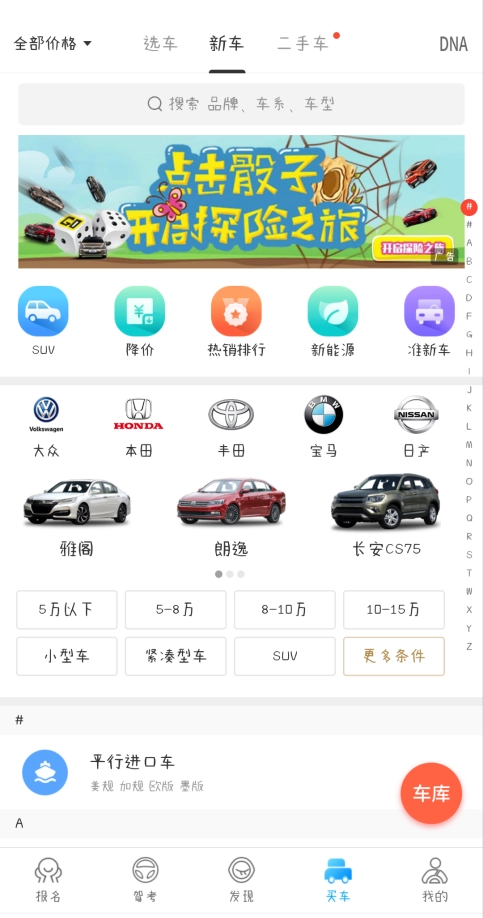 4. 除了驾考相关功能外,您还能在“买车”板块挑选心仪的车辆。点击“热销排行”,就能查看当前的销量排名情况;若点击“价格区间”,则可浏览该区间内的车辆排序。此外,这里也提供二手车购买服务,点击“精选好车”即可挑选想要的二手车。如果您想出售二手车,点击“高价卖车”即可操作,出售前可通过“车辆估价”功能,输入车辆型号来预估合适的售价。