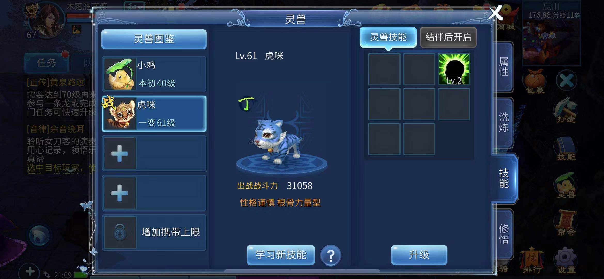 五、让灵兽学习技能并提升技能等级