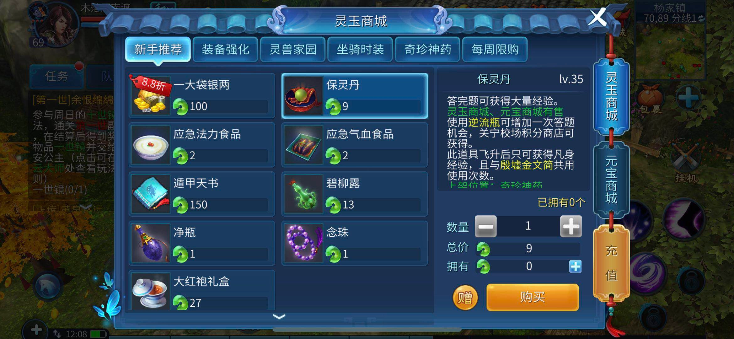 玩家还能通过灵玉购买保灵丹来获取经验,每个保灵丹的售价是九灵玉。使用保灵丹后,玩家需要回答一个可查询答案的问题,答对就能获得大量经验。在没有逆流瓶的情况下,保灵丹一天仅能使用一次;不过,要是玩家用关宁积分兑换逆流瓶,每天最多可兑换两个,这样一来,一天就能使用三次保灵丹了。
