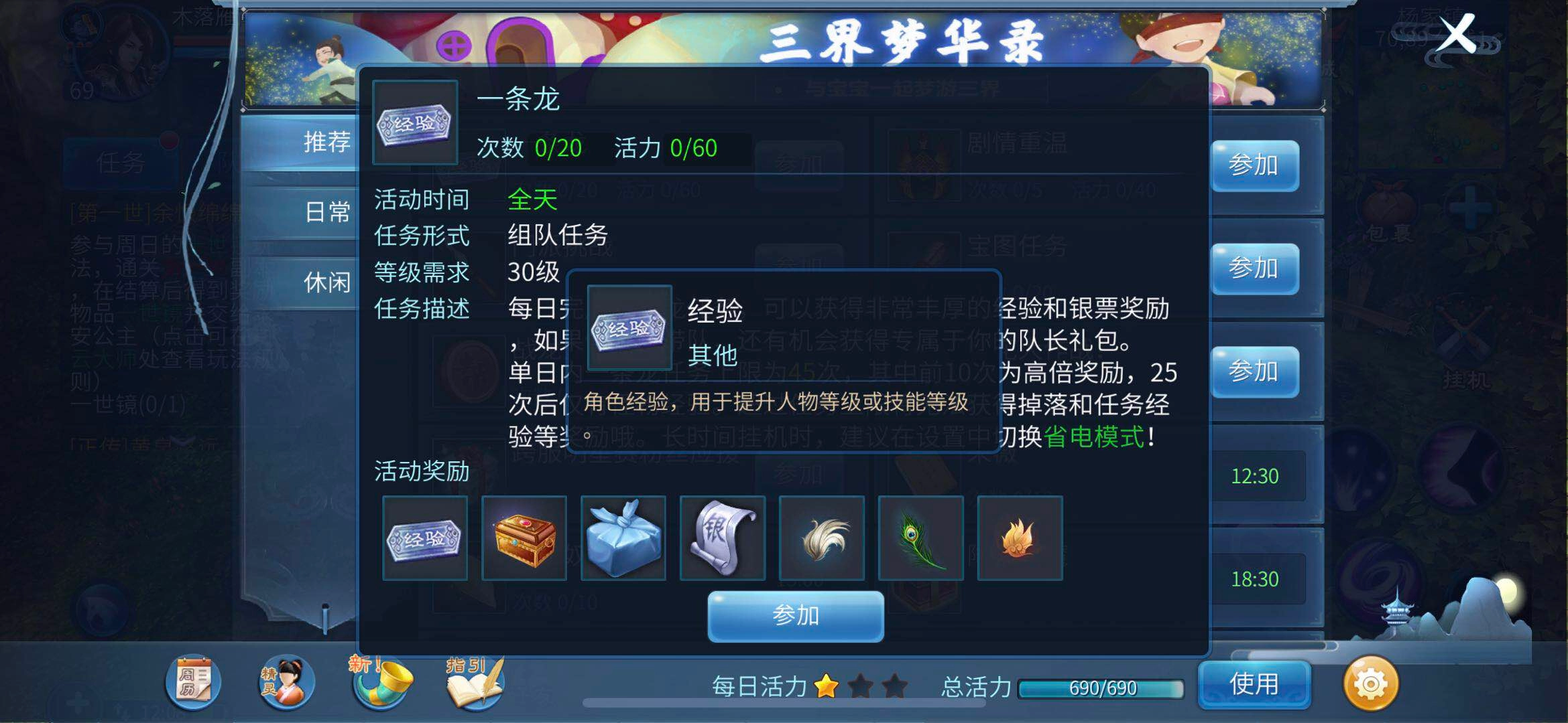 一条龙任务每日可完成四十五次,但仅前二十五次提供任务经验;其中前十次经验最为丰厚,属于多倍奖励,中间十次为常规经验,最后五次则只有少量经验。该任务以五次为一环,中途退出将不计入进度。由于一条龙任务耗时较长,因此建议玩家优先完成此项任务。