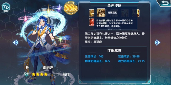 霍雨浩的控制能力同样出色,他的第一魂技“灵魂凝视”能对中排区域造成1.5秒的眩晕效果;而第三魂技“精神混乱”则针对后排目标,使其陷入长达四秒的混乱状态。至于觉醒技的效果更是堪称强悍,不仅能重置必杀技的冷却时间,还能缩短普通攻击的CD,并为自身带来攻速提升等多重增益。