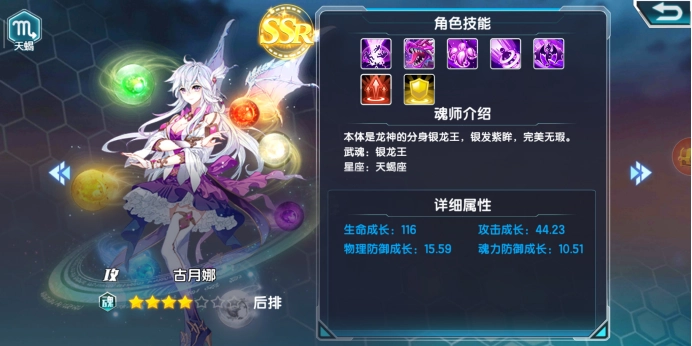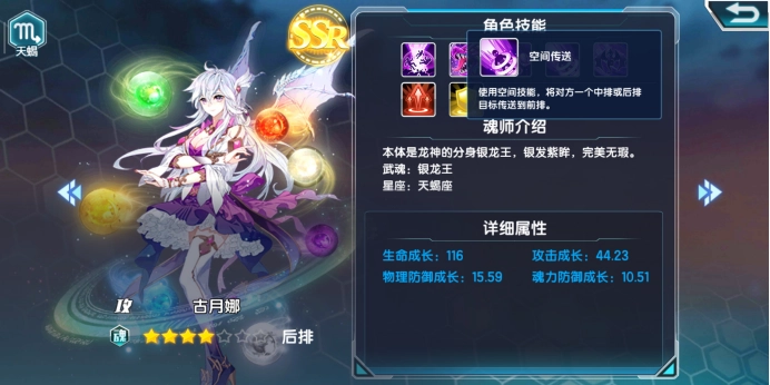 接下来是SSR古月娜,她同样属于强攻系魂师。不过古月娜定位后排角色,拥有更为强劲的爆发输出能力。她的一技能“空间坍塌”与三技能“光球连发”,均为大范围群体伤害技能,输出数值极高。